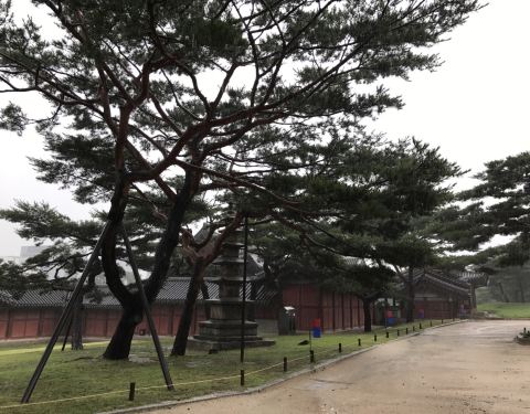 昌庆宫也是首尔古迹之一,不过冷清了很多,天气不好的原因,去的时候只有几个守卫老大爷在里面聊天,...昌庆宫也是首尔古迹之一,不过冷清了很多,天气不好的原因,去的时候只有几个守卫老大爷在里面聊天,这里的历史比较悲惨,因为最后一位韩国的皇帝就是在这里被杀死的,里面的花园在维修,到今年年底才开放。