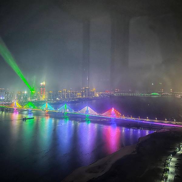 太美了,晚上夜景,很赞两岸的音乐的灯光很好