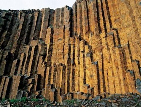1、柱状节理带的奇岩绝壁,是火山创造的另一个奇迹,六角形模样的巨大石柱层层叠加在一起,像精心雕刻过的一样,从而形成了柱状节理带这一大景观,让人惊叹不已。