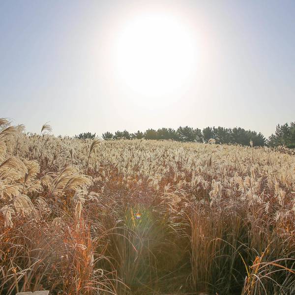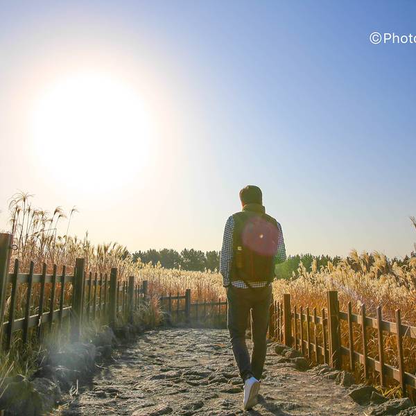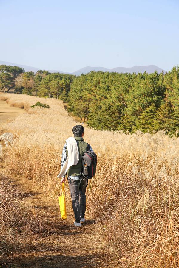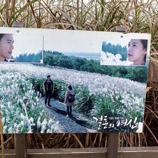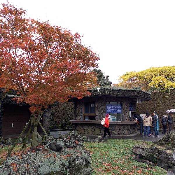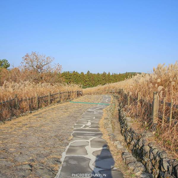 从济州市外巴士总站乘坐710-1或者720-1都可以到达,直接在汽车站的窗口买票,每人1800韩元,如果用当地的T-money卡会有小幅优惠。车程大概40分钟,下车往回走50米就是山君不离的入口处,门票每人6000韩元,在当地门票中算比较贵的了,可以刷卡。景区中比较有名的景观应该就算是山君不离火山口和大片的芦苇荡了。在济州岛,火山口很多,但山君不离火山口中遍布了各种植被,深秋季节色彩非常丰富,只可惜我们去的当天天空阴沉,时而又飘起细雨,所以景色看起来并没有那么绚烂。而芦苇荡是山君不离景区的又一大特色,很多韩剧都曾在这里取景,天气好的时候会呈现出金灿灿的光彩,更加好看。景区内没有太过复杂的路线,很多道路也是用废旧轮胎铺设的,道路状况比较好,走起来不会费太多力气。回程只要在来时的马路对面乘车就好了,只不多路过的两趟公交车次都比较少,等的时间可能会稍微长一点。有一个小提示,公交站亭内会贴有一个二维码,经过实地测试,扫描后可以查询到最近的车辆距离本站还有多远,多少分钟,还是很有意思的,只不过界面是韩文,需要自己尝试着去理解。其实我也是一个韩文都不认识的,但一样可以慢慢摸索出大致的使用方法。