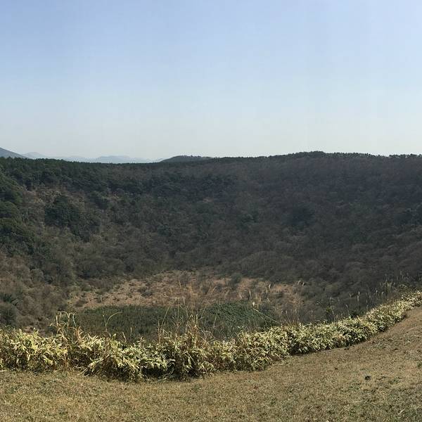 山君不离是一处周长超过2公里的火山口,也是自然保护对象。具体介绍可以...山君不离火山口虽不算是小众的景点,不过一般的旅行团也不太会去。位置在济州市朝天邑桥来里 山38号一带,我们是从市里坐长途大巴去玩的。