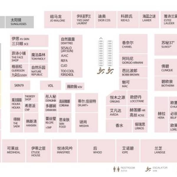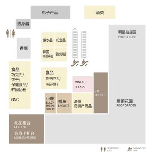 新罗免税店作为三星旗下的品牌保证所有商品100%正品,是全韩国具代表性的免税店。其中,济州店囊括香奈儿、爱马仕等国际著名品牌以及周大福、MCM时,还有后、雪花秀等著名韩国化妆品精品。 地下1层在免税店的地下1层主要汇集了著名的电子产品店SK DFS、以著名的电饭煲品牌CUCKOO为首的包括了OCOO、HAPPY CALL、CUCHEN、LOCK&LOCK、丰年等多家韩国时尚厨具专卖店。 1层1层主要汇集了香奈儿、MCM、PRADA等著名的箱包和时尚用品专卖店。另外,在该层的入口处还设有咨询服务台,详细信息您可以在这里咨询。 2层该层主要汇集了GEUSS、斯沃琪等世界各国的手表品牌店。另外还有深受中国人喜爱的周大福等各种珠宝饰品店以及化妆品店等等。 3层该层主要汇集了各种化妆品店、香水店、太阳镜店品牌店,让您的嗅觉和视觉瞬间被惊醒。另外还有可以购买到烟、酒、电子产品的店铺。店铺之多,让您目不暇接。 4层4层除了各种化妆品店、箱包店、鞋店、健康食品店以外,还有宽大的屋顶花园,您可以在购物之余,来这里独享一份轻松的休闲时光。 主营品牌:BALLY、CALVIN KLEIN、DAKS BAG、DANAHAN、DAVIDOFF、DEWYTREE、DIO、DIOR (EYE)、DKNY WATCH、DOLCE&GABBANA、 Daniel Wellington、EMPORIO ARMANI、ENPRANI、ERMENEGILDO ZEGNA、ESCADA (EYE)、ESTEE LAUDER、ETUDE、FENDI、FERRAGAMO、FOLLI FOLLIE、FREDERIQUE CONSTANT、FRESH、FUJI、G-SHOCK、 GIORGIO ARMANI COS、GIORGIO ARMANI PFM、GIRARD PERREGAUX、GIVENCHY、GLASHUTTE ORIGINAL、HELENA RUBINSTEIN、HENNESSY、HERA HERMES、HOLIKA HOLIKA、HUBLOT、 HUGO BOSS、HUGO BOSS PFM、HUROM、JURLIQUE、KENZO、KIEHL'S、LA MER、LACOSTE、LANCOME、LANVIN、LG、LOEWE、LONGINES、LOREAL PARIS、LOUIS QUATORZE、MAC、OHUI、ORIGINS、PANASONIC(DFS)、PANDORA、PANERAI、 PHILIPS、PIAGET、PN KITCHEN、POBLING、POLICE、PRADA、RADO、REMY MARTIN、ROLEX、ROYAL SALUTE、 S.T.DUPONT EYE、SAMSONITE、SAMSUNG、SULWHASOO、SUM 37˚、SWATCH、THE FACESHOP、THE SAEM、TISSOT、TITONI、TOD'S、TOMFORD、UDOR、VACHERON CONSTANTIN、VAN CLEEF & ARPELS、VIVIENNE WESTWOOD、VOV、WHOO等。