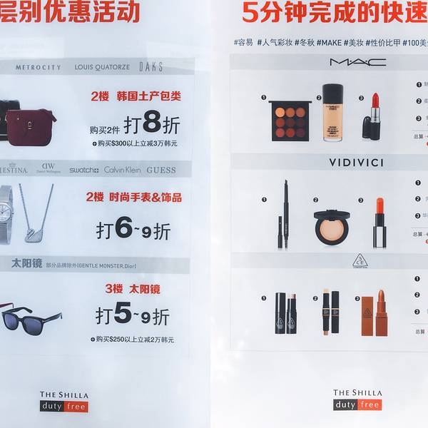 - ...试用的彩妆可以到店试色再买,其他护肤品真的强烈建议在网上新罗免税店购买哦,节约购物时间和体力~