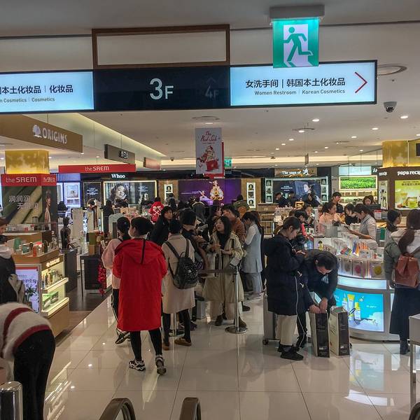 相比第一次早上开门过来,人少购物体验会好很多。过来可以挑选时间哦~避开旅行团出没的时间也会好很多(不过我也不知...济州的新罗,第二次来。这次来是下午接近傍晚,顾客很多,商场门口都挤满了人,生意爆棚了。