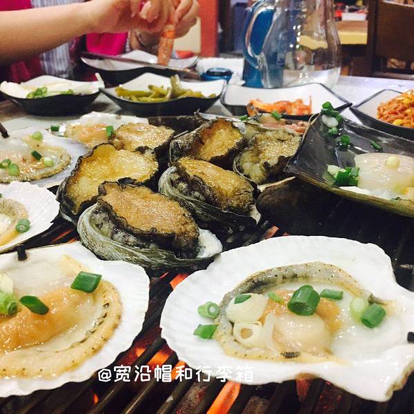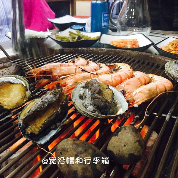 济州岛除了是度假圣地,也是代购们的天堂,所以来了这里怎么能够不疯狂购物,买买买呢?新罗免税店和乐天免税店都有app,可以直接在线购物,机场取货,每天优惠都不一样。另外还推荐几个app也如下,在韩游网,门票、酒店、公演、Wi-Fi都可以预定,门票还有优惠。最开心的,除了买了很多护肤品,还逛了很多潮牌店,买了很多t恤、帽子、包包,比国内便宜很多哦!晚餐:海鲜烧烤(就在新罗免税店附近)