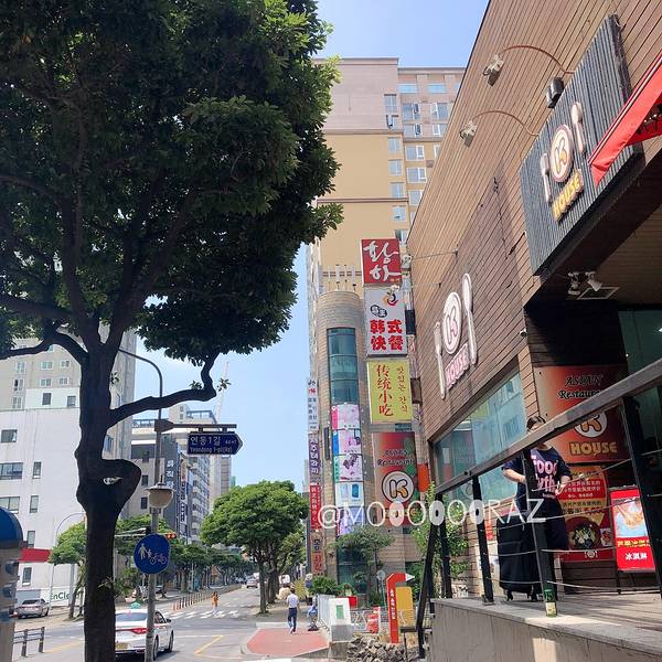 - 新罗免税店旁边的街道。免税店的东西一般都不单卖,需要搭配其他的,或是一组一组卖
