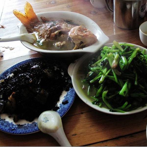 饭店还提供住宿,三人间带电视周末120平时80。不带电视的周末10...14:40抵达官坑,管坑饭店午餐,传说中的荷包红鲤鱼除了活着的时候看着养眼外煮熟了和普通鲫鱼没啥两样。鲤鱼养在池子里大小都差不多,可以自己挑。