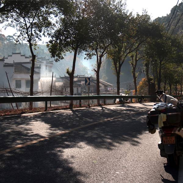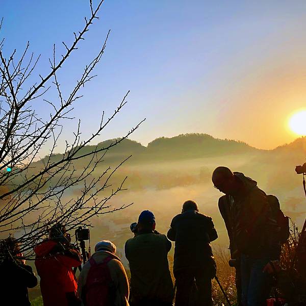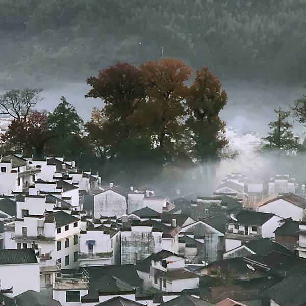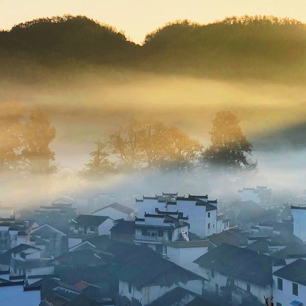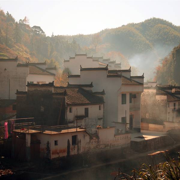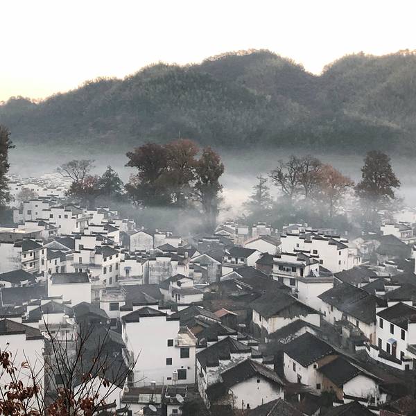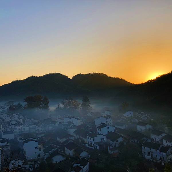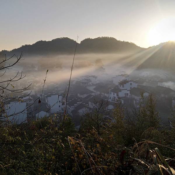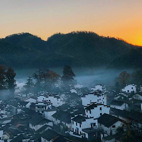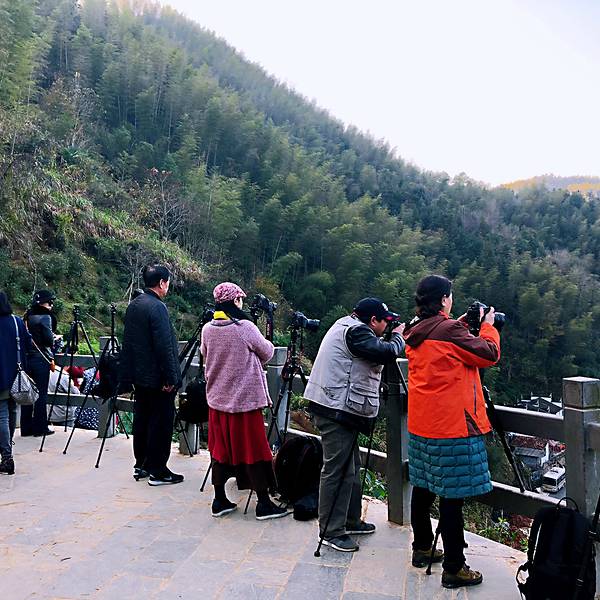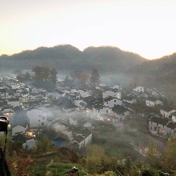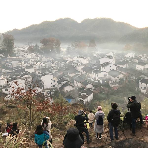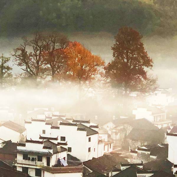 天还没亮,5点我们就出发了,沿着一条村里的小路我们跟着人群往里走,一路都有标识山坡上已是满满的等待日出的人群,听说有的人想占一个好的位置还要花掉200元。天已亮,现在是等着阳光露出山头,雾气慢慢变多,聚拢,整个村庄笼罩在飘渺的雾气下钟灵毓秀,仙气萦绕凌晨6点,天微亮,炊烟袅袅升起,人们不停的按下快门,生怕错过每一分每一秒。太阳开始露头当一轮朱红色从天际慢慢地爬上来,炊烟晨雾渐褪,人们欢呼着默默站在角落里静静的看着这如梦幻般的仙境,晨雾中的美女晨曦的薄雾缭绕晨雾似云海而又非云海,蜂拥而至的升起,又瞬间散落四方光芒万丈太阳终于全露出来了,强烈的光芒耀眼夺目回头看看身后,惊叹这些执着的人们清晨雾气或炊烟中的火红枫树美得惊人。千年高大的古枫成林与白墙黑瓦掩映一体,晨雾悬挂树腰,红叶在晨雾中若隐若现,仿若人间仙境远远望去,满山头都是密密麻麻的人群当太阳已经完全升起,眼前山下的程村随着晨雾散去逐渐清晰起来,这才蓦然发现整个村落都被四周巨大的古枫包圈在狭小的山谷之中,我们随着人流慢慢回撤,来时的路边很多小摊点都已经开始卖早餐了,我们的早餐还是回客栈吃的。因为起的太早,大家用完早餐还是休息了一下才往长溪出发 展开