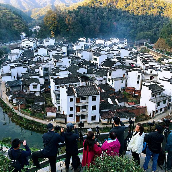 默默站在角落里静静的看着这如梦幻般的仙境,。两村现在统称石城红枫叶风景区,统一在村口收取25元的门票吃过午饭,我们从篁岭出发,前往石城,途径点菊径村夕阳中的村落菊径村是个典型的山环水绕型,四周高山环绕,成大半圆型,绕村庄将近一周,四周为高山环绕。上了村庄对面的小山坡在半山腰处就见到整个菊径村,一...吃过午饭,我们从篁岭出发,前往石城,途径点菊径村夕阳中的村落菊径村是个典型的山环水绕型,四周高山环绕,成大半圆型,绕村庄将近一周,四周为高山环绕。上了村庄对面的小山坡在半山腰处就见到整个菊径村,一条小溪圆圆地环绕整个小村,小溪与公路的连接是一座座小木桥,整个村子一面靠山,很符合中国的八卦“后山前水”设计。村口有一座廊桥和宗祠,村内巷陌交错,村外曲水环绕,如果不是公路的进来,这里绝对是一个世外桃源。等候夕阳西下的长枪短炮上这个观景台是要收费的,20元,简陋的收费口由当地人搭建,没有停车场,车子都停在路边在这我们稍作停留就直接开车前往石城了。