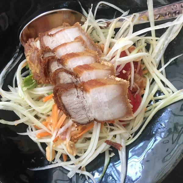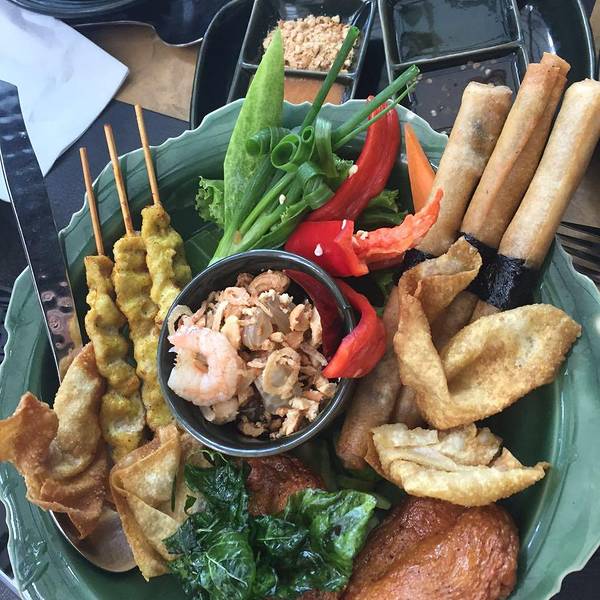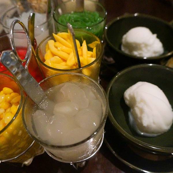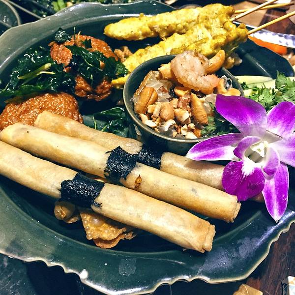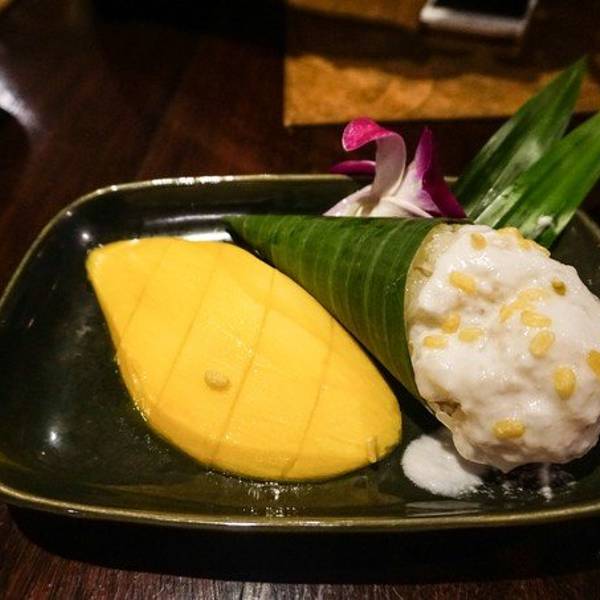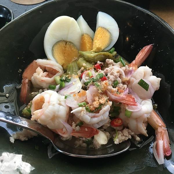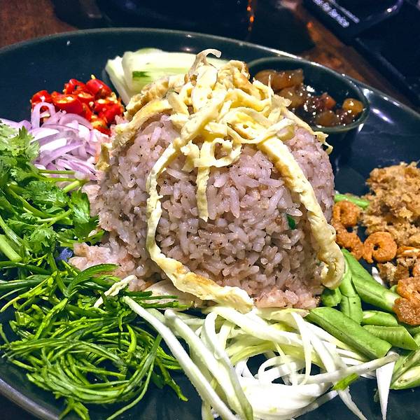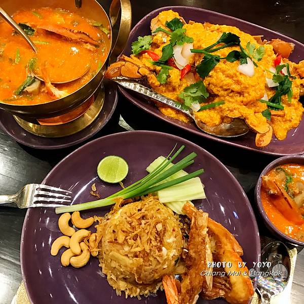 是一家连锁泰菜,有几家分店。连续10年被评为泰国最佳餐馆之一。最大的特色是将街头常见的曼谷美食时尚精致化。就餐环境舒适且价格良心,人均500B。帕泰,一种泰国炒河粉,是街头相当常见的美食之一。大虾炒饭,煎好的虾配上虾油炒过的米饭。泰式小吃拼盘,适合都想尝尝肚子不够的我们。椰子冰激凌,分两种口味,区别就是拌进去的辅料不同。
