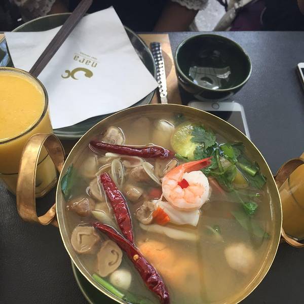 泰国最佳餐厅Nara,之前种草了,泰国有很多家,据说连续两年被评为泰国最好吃的餐厅。正好在逛无意间就看到了。。没有排队,不过人都很满,没坐到靠窗位置。。旁边一大桌就是泰国人,在为朋友庆祝生日。这个咖喱...泰国最佳餐厅Nara,之前种草了,泰国有很多家,据说连续两年被评为泰国最好吃的餐厅。正好在逛无意间就看到了。。没有排队,不过人都很满,没坐到靠窗位置。。旁边一大桌就是泰国人,在为朋友庆祝生日。这个咖喱虾真的超赞!!Yummy!!还有一个冬阴功汤什么鱼,好辣。。作为一个重庆人都觉得辣,,不过鱼还是蛮好吃的,还是值得一来。