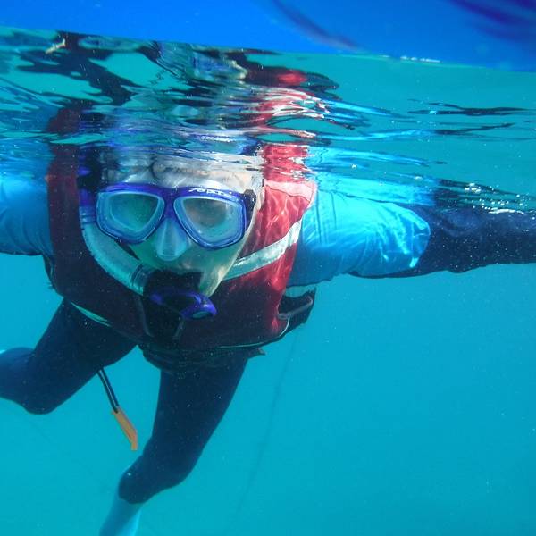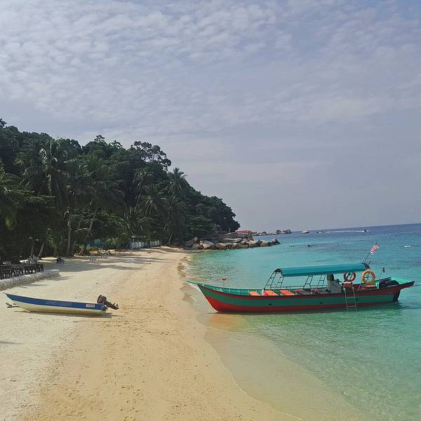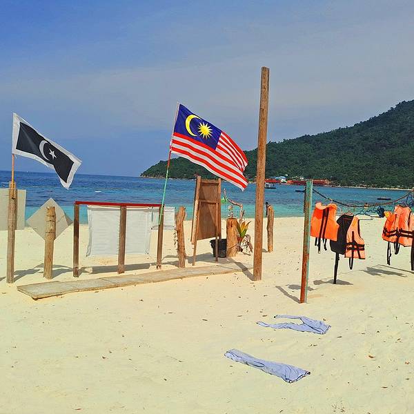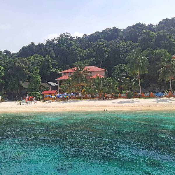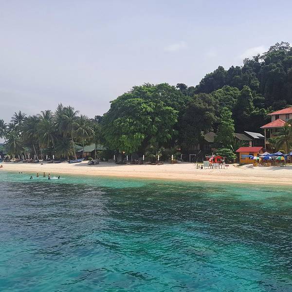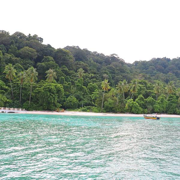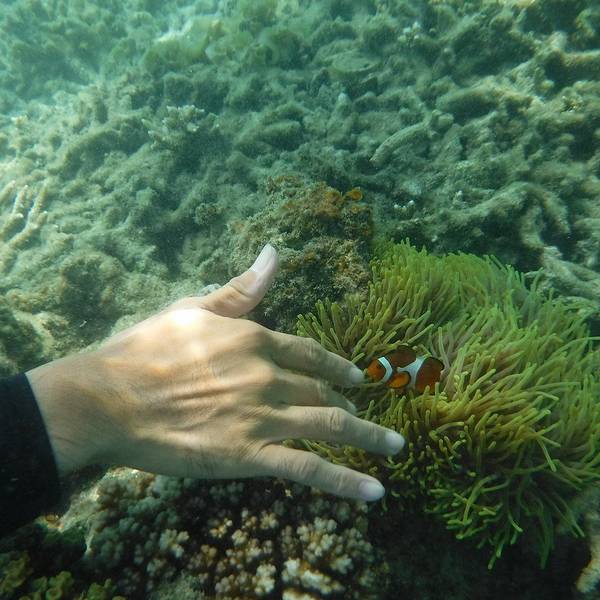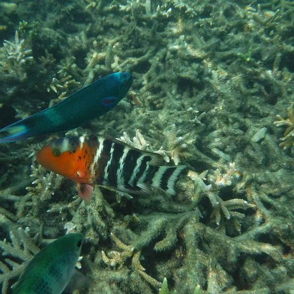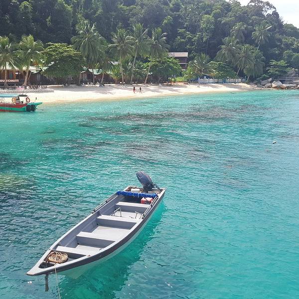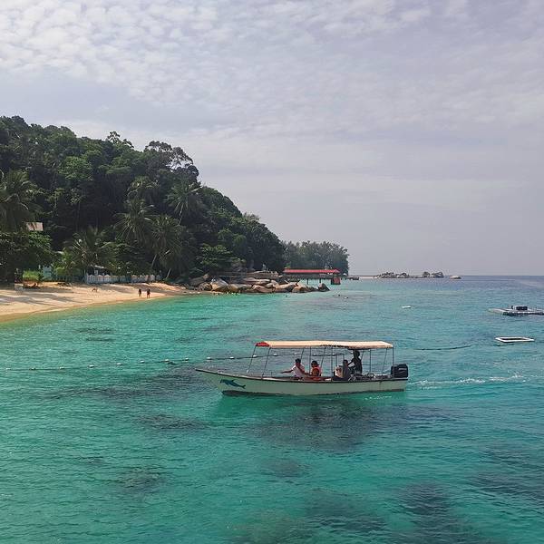 在浪中岛的第一个早上,本打算参加看日出活动,早早起床,到了酒店大堂才发现,当天日出活动因为天气原因取消了,只好继续回去睡觉咯。 七点多起床吃完早餐,回房换好衣服拿好行李,就去大树下等,8:30左右出发坐快艇参加停泊岛的浮潜活动。记得带点现金,上岛可以消费。 半小时左右就到了大停泊岛外海,大家纷纷跳下水。