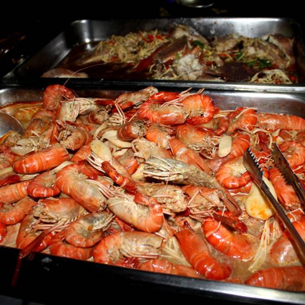 像超级大排档,每人200B左右的自助餐。菜品有很多,有泰国经典料理、经典甜品、畅饮的饮料。吃的时候要注意不要多拿,餐馆规定浪费的食物要论斤罚钱。由于是室外只有大风扇,加上常年高温,所有会吃的满头大汗。