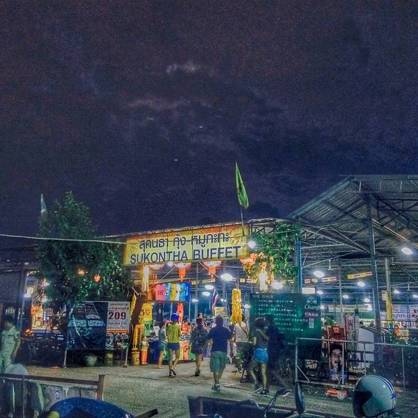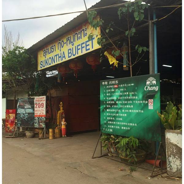 抵达清迈,直奔宵夜,Sukontha Buffet,我们吃的还不错,身边都是泰国本地人,味道主要靠酱料,有好几种,而且真心实惠啊,食物饮料都随便拿~泰国本地可乐螃蟹和虾是单点的,价格真是便宜的不要不要的,虾又大又...抵达清迈,直奔宵夜,Sukontha Buffet,我们吃的还不错,身边都是泰国本地人,味道主要靠酱料,有好几种,而且真心实惠啊,食物饮料都随便拿~泰国本地可乐螃蟹和虾是单点的,价格真是便宜的不要不要的,虾又大又好吃,螃蟹一般我们这一天好几顿饭的节奏,人前吃到人后,基本把人吃空了。。。我喜欢的玻璃瓶的豆奶7-11有售