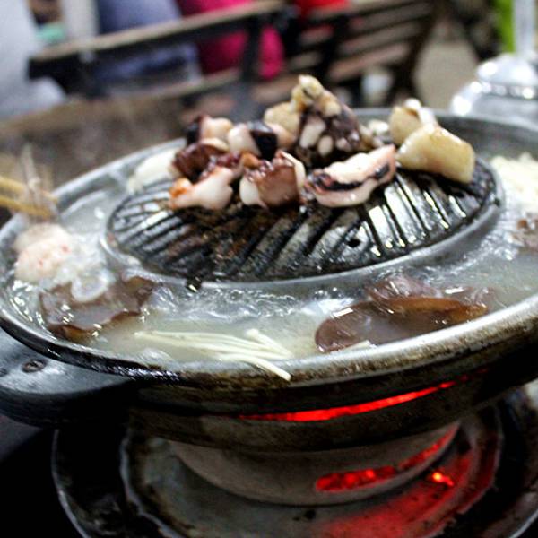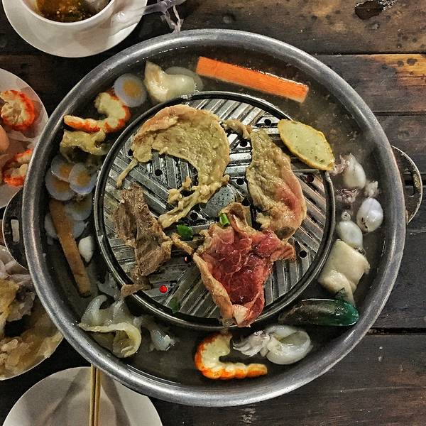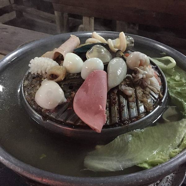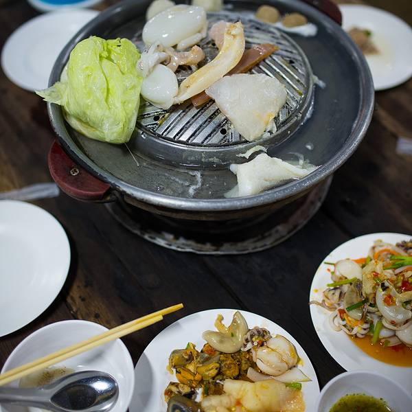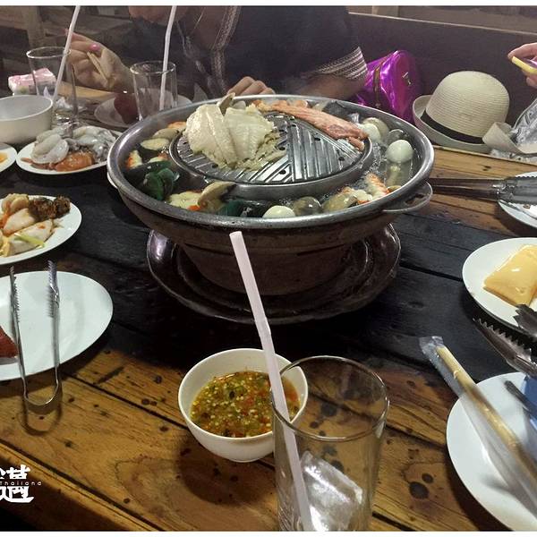 从素贴山下来,再去清迈大学逛了一圈,在回古城的路上,我们发现了传说中的千人火锅。千人火锅就是泰式炭烧火锅,千人火锅因为国人的叫法而出名,因此在老远的地方就能看见它的大招牌,而实际上从大路要拐进小巷...从素贴山下来,再去清迈大学逛了一圈,在回古城的路上,我们发现了传说中的千人火锅。千人火锅就是泰式炭烧火锅,千人火锅因为国人的叫法而出名,因此在老远的地方就能看见它的大招牌,而实际上从大路要拐进小巷并骑100米左右才能找到这里。自助火锅如果从口味上,讲真是不能跟四川火锅相提并论的,但是咱在异国他乡,吃的就是一个特色,而这特色就是一个氛围,如此真正的大山寨的氛围就是它的特色!一顿完美的海鲜自助大餐也算是临行前的压轴了,如果有更多的时间,我还愿意在清迈度过更漫长的时光,飞机在深夜离开清迈,步入我们的故土,也让我们回到了昔日的工作与生活,生活继续着,下一段的旅行也继续着。