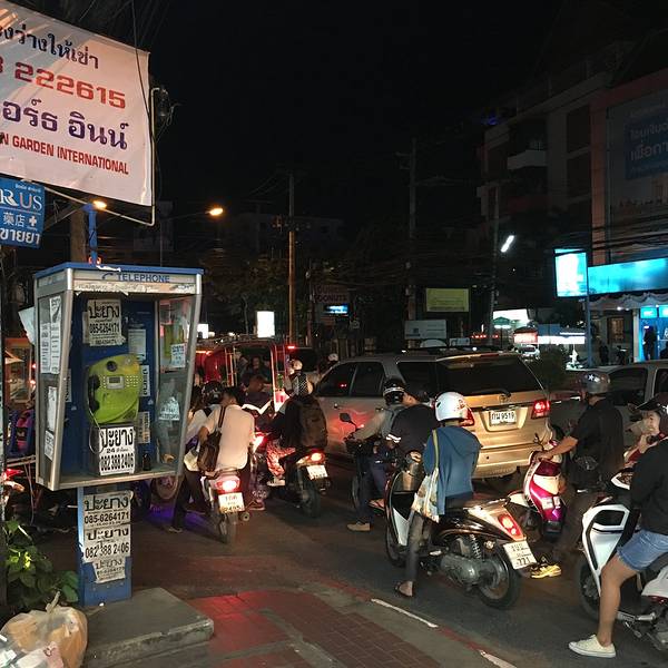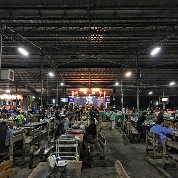 价格:200泰铢/人与其说这里是美食推荐到不如说是景点了。自助火锅,但是可选择的食材相对较少,口味也一般。一些好一点的食材需要另外付钱。说这是餐厅不如说是民工食堂了,就是一个大厂房改造的。有个舞台上面歌手倒唱得不错。“吃饭讲究的就是个环境,好评!”饭后百步走,居然看到摩托车都能堵车,服了你们。