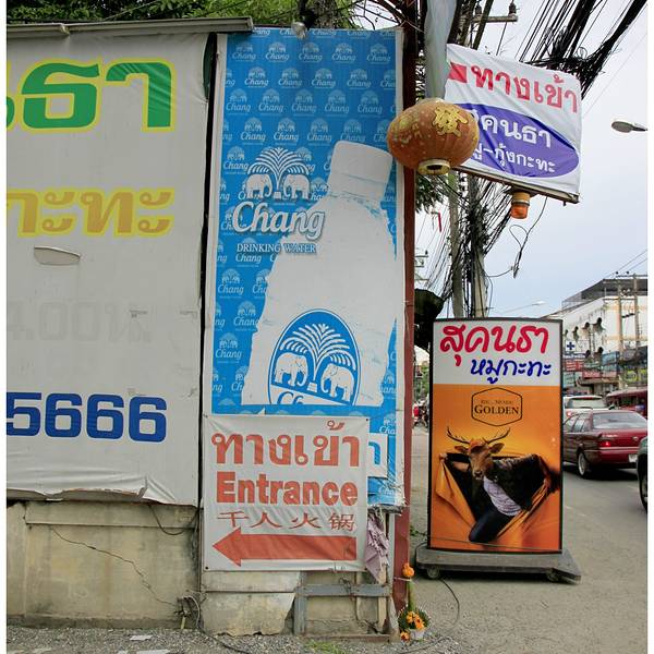 如果自行前往,先到清迈城墙外西北方向的Huai Kaew路,看到Central Shopping Mall 后, 向前(往清迈大学方向)再走一段,在你左边看到一家“大華銀行”(汉字)后,银行对面的巷口有一 黄色灯布广告的招牌,上面一串的泰文,认定中间“1000”就是了,顺着这条巷子走进去就可以到达~