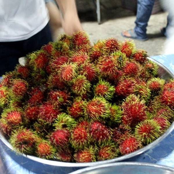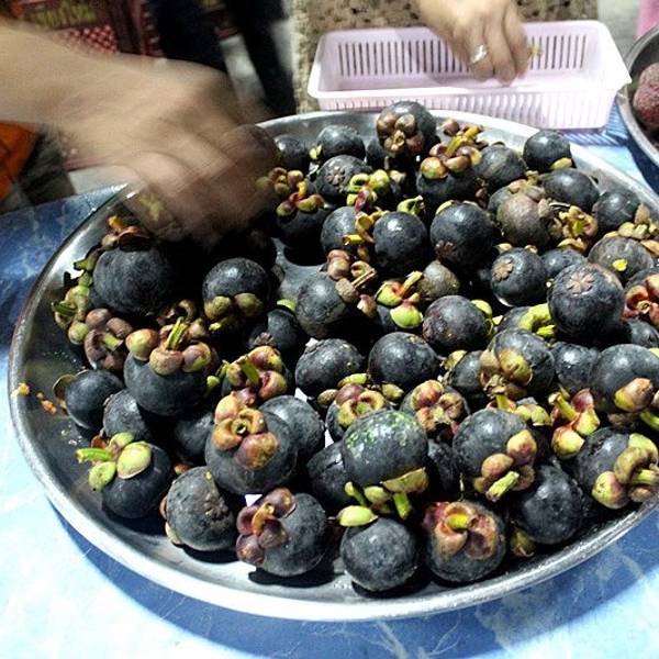 这边水果可山竹很甜的。以多吃点哦 统统是用筐装的,空了就倒进盘子里