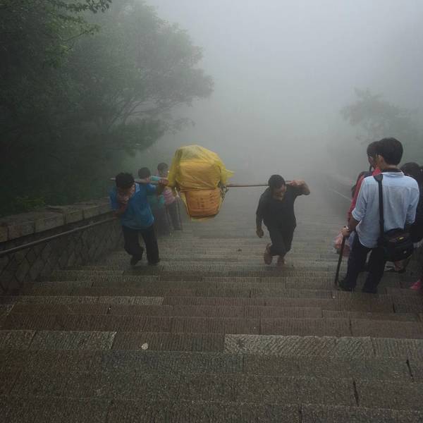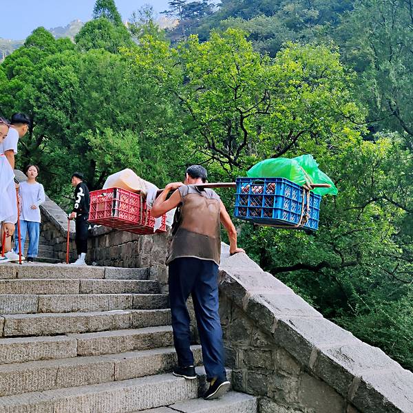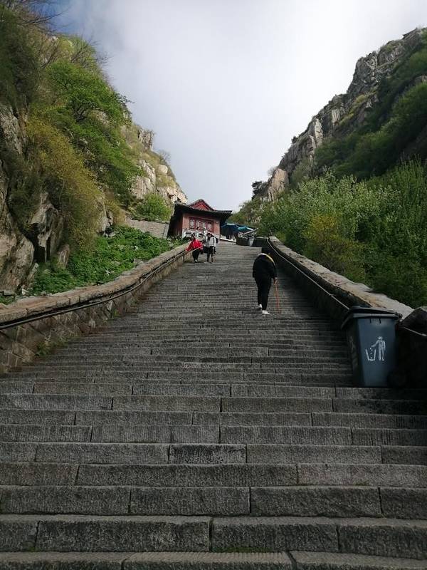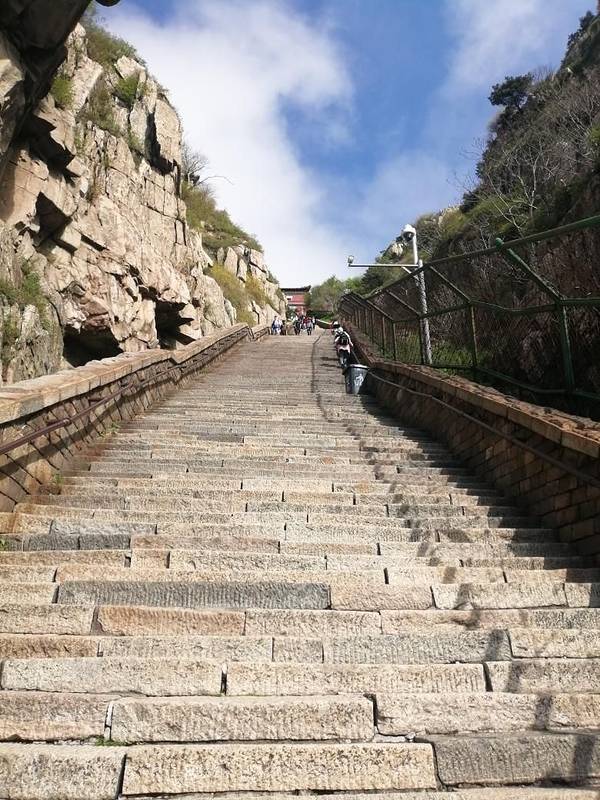 在十八盘下山的路上遇到挑山工,敬重这负重前行的人儿,也感谢泰山这不算贵的物价全长800米,高度400米,台阶1600个!