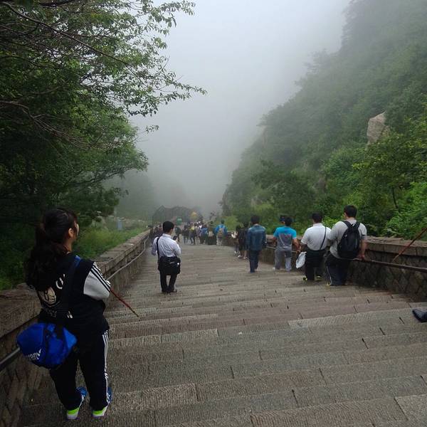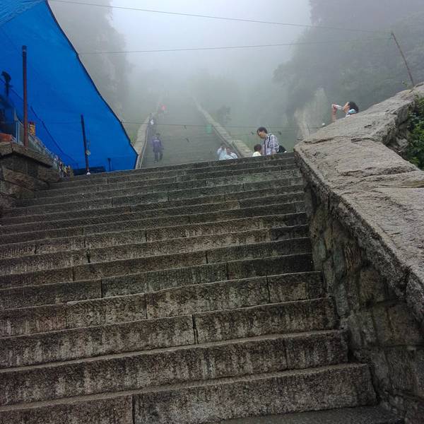 上山难,下山也难,脚已经软了,膝盖酸痛。暗暗发誓,下次爬山一定提前一段时间锻炼锻炼,哈哈在十八盘下山的路上遇到挑山工,敬重这负重前行的人儿,也感谢泰山这不算贵的物...全长800米,高度400米,台阶1600个!