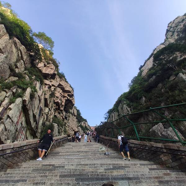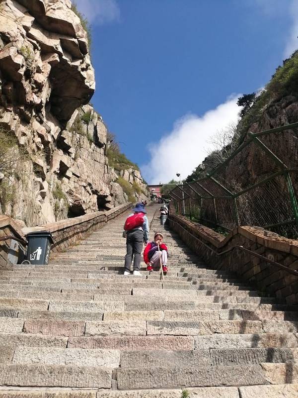 泰山十八盘一直给我一种黄山好汉坡的感觉,都是有大勇气的游客才能体验的,泰山不坐索道,靠双腿走到南天门泰山十八盘一直给我一种黄山好汉坡的感觉,都是有大勇气的游客才能体验的,泰山不坐索道,靠双腿走到南天门,真的是很厉害的,最后看到不少游客都手脚并用了