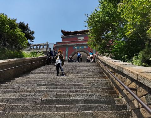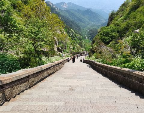 十八盘真的好陡,夜晚爬的时候不觉得,白天下山了,脚都有点打颤,只能扶着栏杆一步一步走下去。