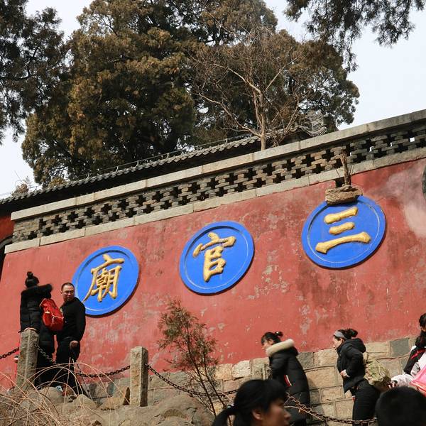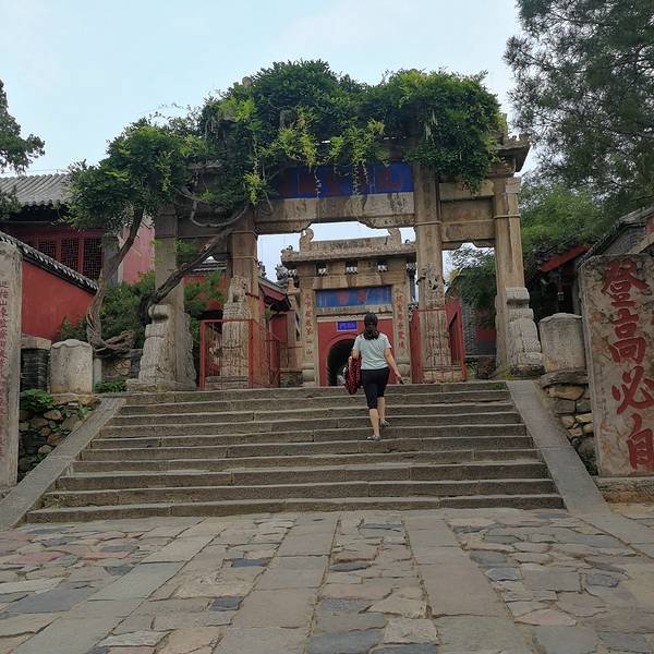 关帝庙位于登山盘路的零公里处,座北朝南,古槐蔽荫,山门后的上面连接着戏台,我们下山方向进入,颇有点惊艳,估计很多游客都忽略了。一天门,这里是泰山盘路的起始处五岳孔子登临处古藤蔓蔓,古韵典雅,柱刻“素王独步传千古,圣主遥临庆万年”天阶坊,“人间灵应无双境,天下巍岩第一山”传说中的红门,可以上去红门回看山路旁的野花山路下方人声水声交织,应该是本地人免费游玩的地方万仙楼售票处万仙楼,回转了关帝庙关帝庙内关帝庙内戏楼戏楼下的视角文创产品,泰山石敢当买了一个吃碗面,十二元一碗,比山上的好吃 展开