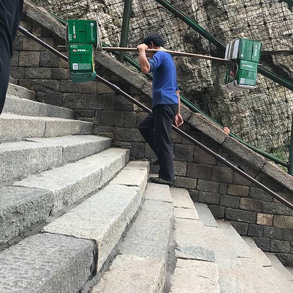 1、建议必要时买根登山杖,减少腿部压力,下山时很有帮助,否则容易腿软。登山杖在红门处就有的卖,沿途也有很多小摊卖,另外路上有很大的几率捡到前面的游客不小心掉下来的登山杖。