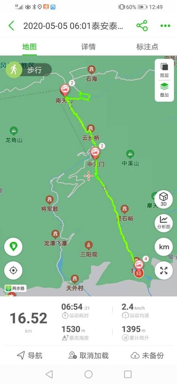 1.登山线路最好是早6点前在天外村坐大巴到中天门下车(车费30/人)再在中天门坐索道(100/...爬了接近七个小时的泰山,下山时在大巴车上累的不要不要的,后悔的不要不要的!我和大姑娘是头天晚上11:00准时从红门开爬的,历经6小时26分,于第二天早5:36分到达南天门!途中无数次休息!下山时大姑娘实在走...爬了接近七个小时的泰山,下山时在大巴车上累的不要不要的,后悔的不要不要的!我和大姑娘是头天晚上11:00准时从红门开爬的,历经6小时26分,于第二天早5:36分到达南天门!途中无数次休息!下山时大姑娘实在走不动了,坐的缆车到中天门倒的大巴,在天外村下的车,打的黑车返回的红门住宿的地方!