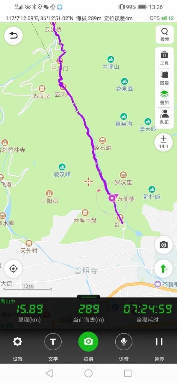 红门——中...午饭后到达红门已经13:00了,因为时间关系不够爬全程,中天门——南天门的缆车18:00停运,如果错过就需要步行下山或者留宿山顶。我选择步行相对平缓的红门——中天门,然后乘往返缆车+下山大巴车。
