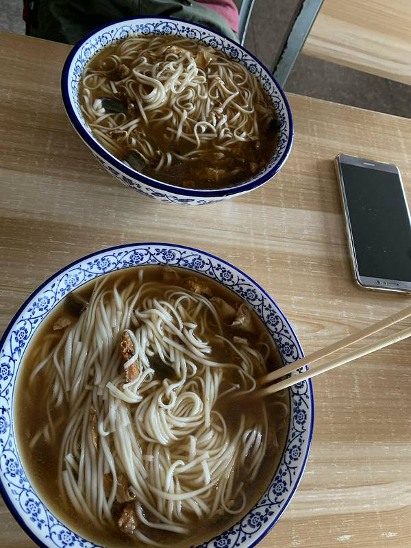 再者泰山门票两天有效,想着走一段体验一下。万仙楼售票处。吃碗面,十二元一碗,比山上的好吃。买了一个一觉醒来不到七点,近十个小时的睡眠,感觉体力恢复不少,下床走了几步,腿脚略有酸痛的感觉,坐缆车下山的决策还是相当英明的,定的的房间不含餐,收拾一下退房,去红门。
