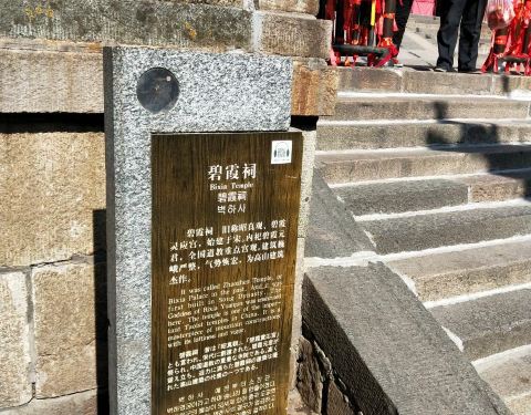 听说这的泰山老奶奶很灵 在庙里磕头祈求平安