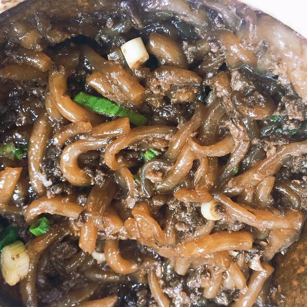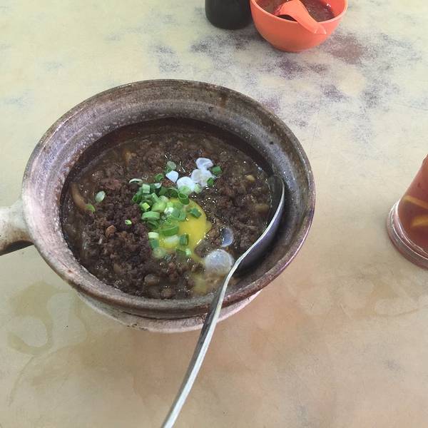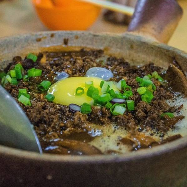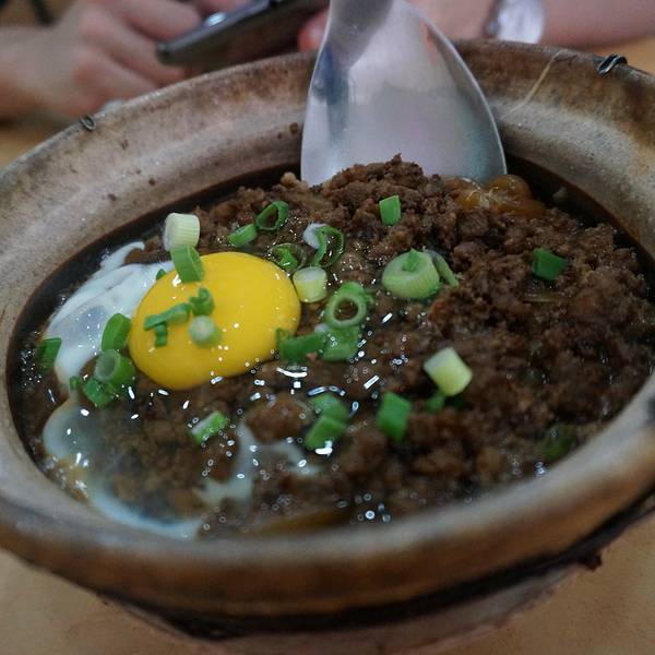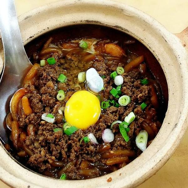 - 其实就是砂锅肉糜+粗粉条,口感以甜、咸为主,刚刚出国的时候在上面打上一粒鸡蛋使得口感更加软糯
