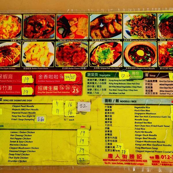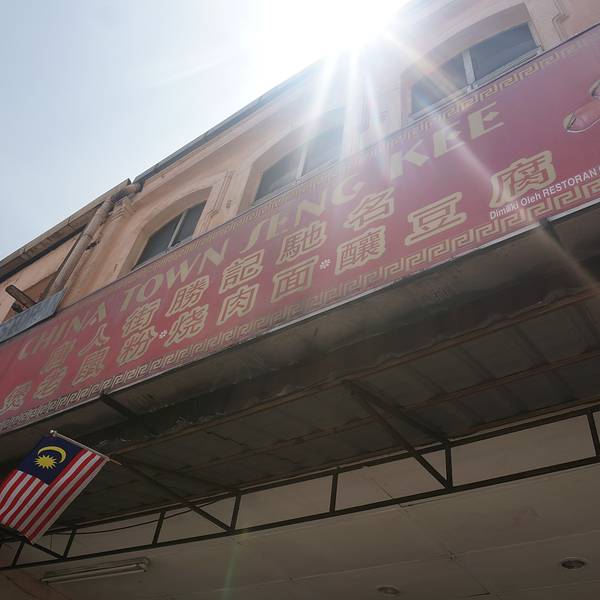 传说中的胜记,在唐人街附近,店里没什么人,招待我们的伙计是印度人,会讲粤语的印度人。 春节,吉隆坡的街道上好少人啊,没几家店是开的,开着的店里也没什么人。 点了招牌菜瓦煲老鼠粉和酿豆腐。 老鼠粉是一种粉,据说是因为形状像老鼠而得来的名字,瓦煲上桌时还是滚烫的,煲里的蛋黄还没熟呢。说实话,味道都有点重,刚开始吃觉得很像,但吃多几口就想喝水,不太习惯。酿豆腐的炸腐竹味道也不错,酱汁是秘制的,吃一两块就行了,因为会腻,菜饭先生尝了一口就不吃,整盘给我,我吃到第四块就想喝水……