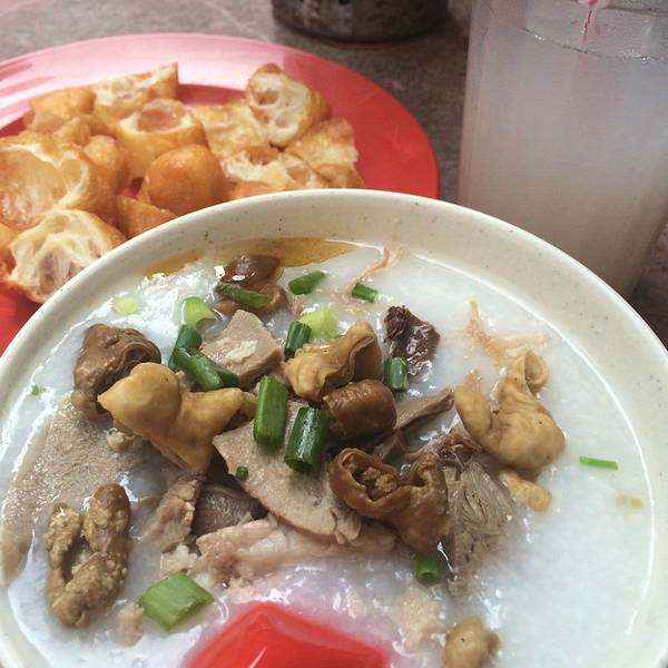 - 主打的生滚鱼片粥卖完了,只能尝尝这个猪肠粥,味道还挺不错。味道倒还不错,只不过这名字实在不雅啊