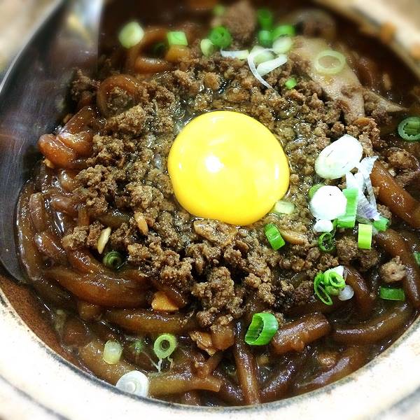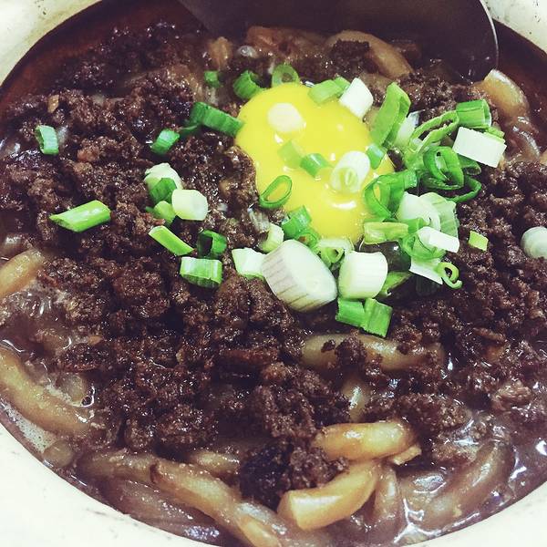 其实就是砂锅肉糜+粗粉条,口感以甜、咸为主,刚刚出国的时候在上面打上一粒鸡蛋使得口感更加软糯