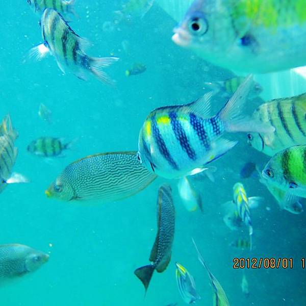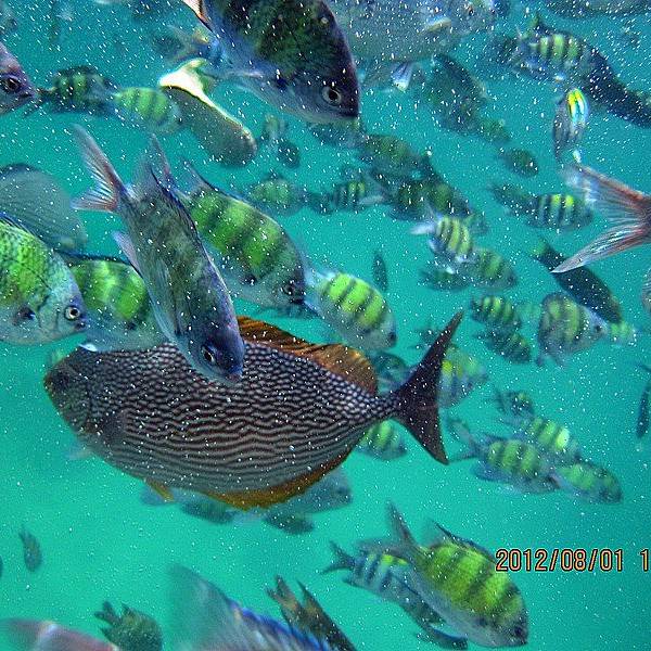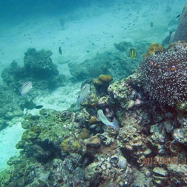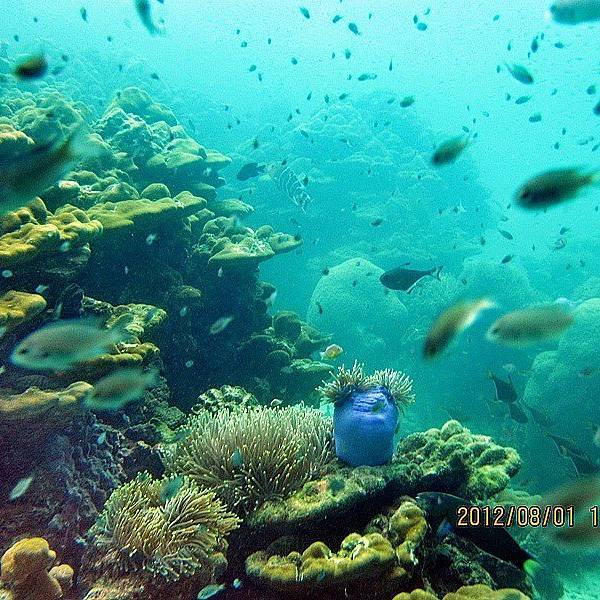 是不是很美。好多鱼哦。中午饭吃饭盒,很简单,不好吃。遇见了小丑鱼到芭雅岛了,要坐摆渡船过去