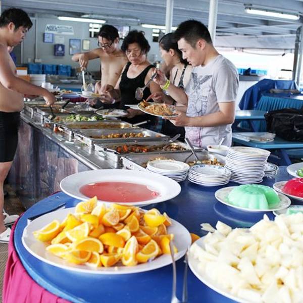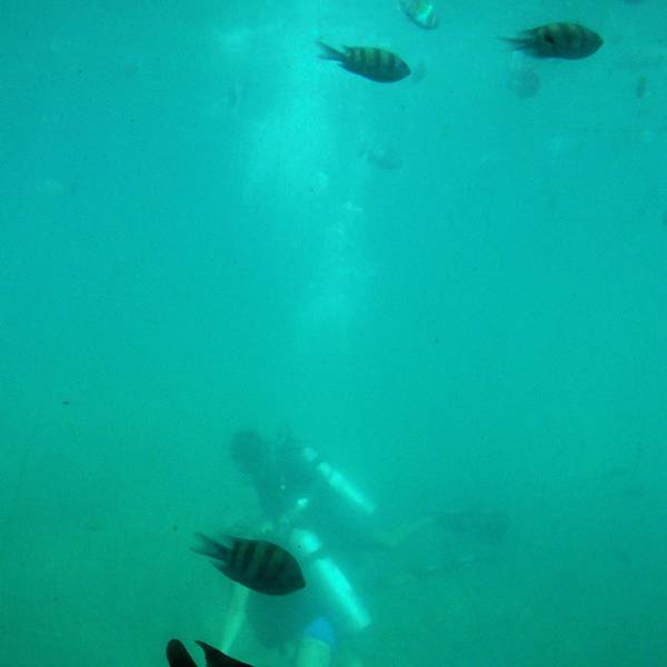到巴雅岛有两种配套,岸边浮潜配套和平台浮潜配套。前者价格较便宜,船会把你送到岸上,让你到海边浮潜,午餐是简单的便当。岸上的实施和卫生条件比较差,厕所很破无淡水。平台浮潜配套的设施较完善,卫生条件好,有淡水供冲洗,午餐是自助餐。平台底下是一个玻璃空间,不想浮潜的可以透过玻璃窗欣赏鱼群和珊瑚。在巴雅岛无潜水证也能体验潜水的乐趣。教练会一带一地把你带到海底,感受这平静而美妙的海底世界。在各旅行社报名就行,价格大概在5-6-7百人民币之间,具体视淡旺季而定。