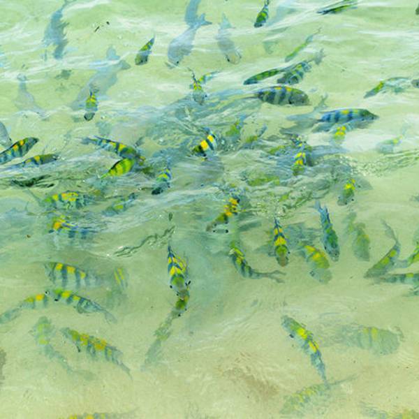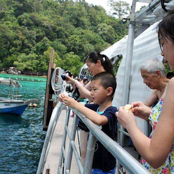 平台上的鱼群也很多,海鱼太热情,比小鱼温泉的亲吻热烈多了。甲板风光。不潜水也能观鱼。平台上鱼也很多来兰卡威,怎能不和大海来一次最亲密的接触。