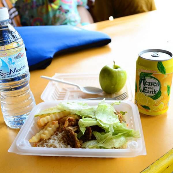 想看海的话走到下船的地方去比较好,人少而且景色比沙滩上好一点。很小的一盒炒饭~据说这是小鲨鱼1小时左右到达芭雅岛。看到的第一感觉是,怎么这么小!沙滩浮潜整个活动范围就是下图的那一小片沙滩,而且人很多。