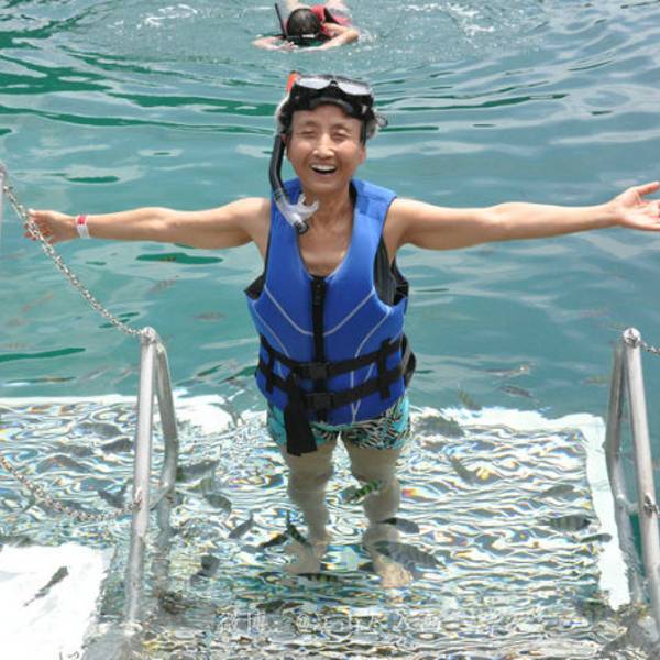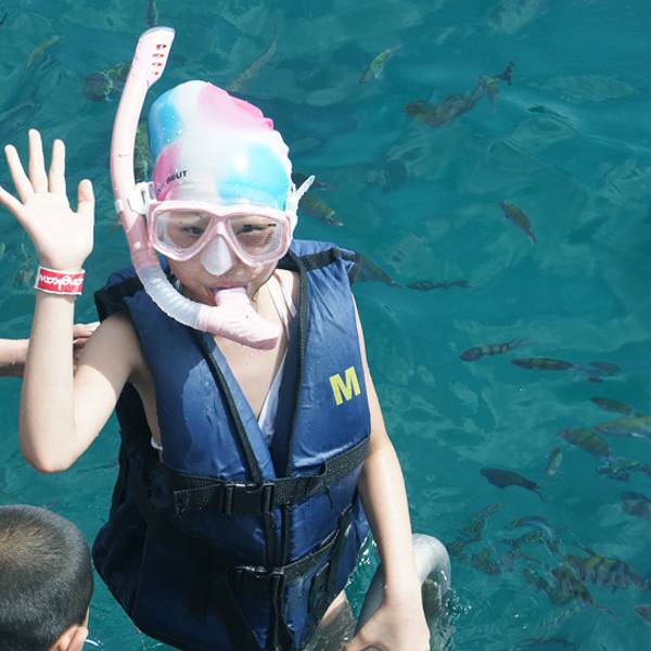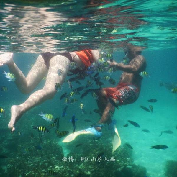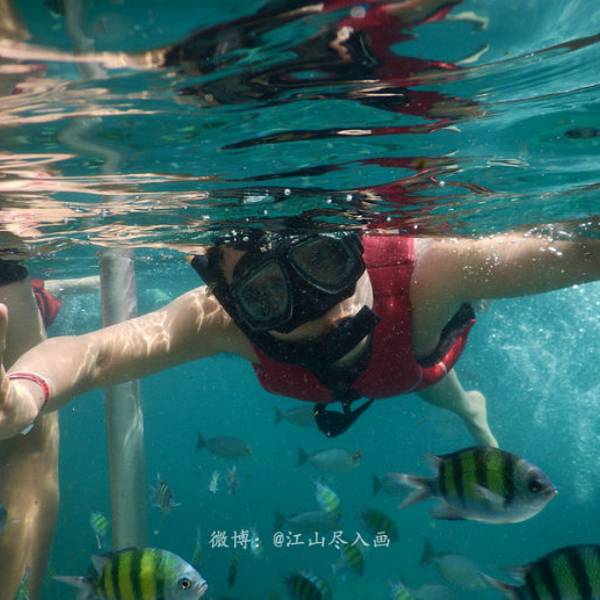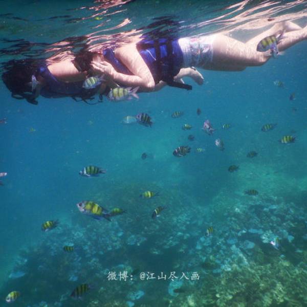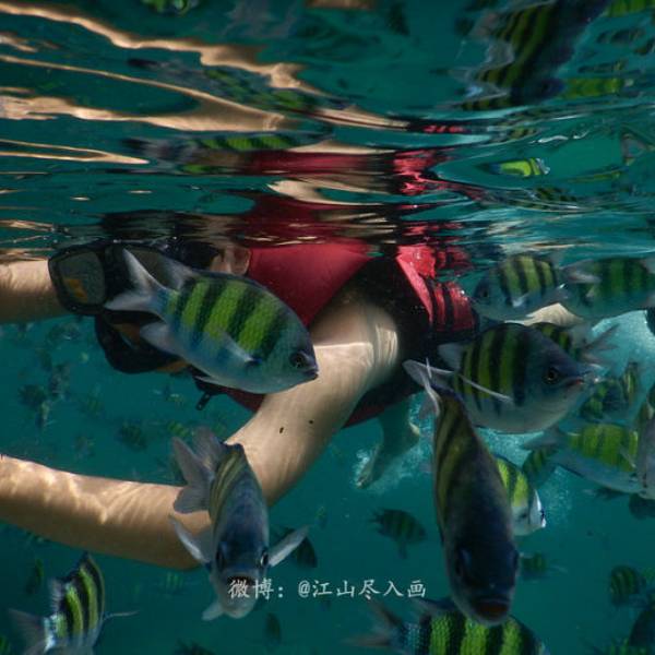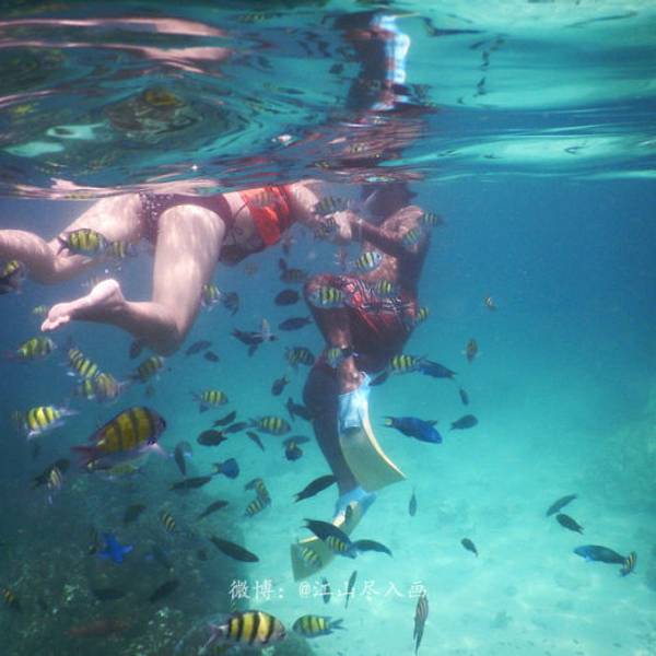 2.浮潜的时候可以带点小饼干小面包,装到小瓶子里面,很多鱼儿就会游过来,超壮观的,超好玩的。3.装备里面记得必须有浮潜穿的鞋子,因为我看到有一个男人的脚硬生生被海胆扎了,救生员用棍子打他的脚板底才勉强把毒素打出来。好吓人。