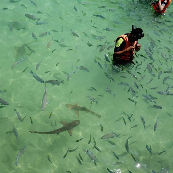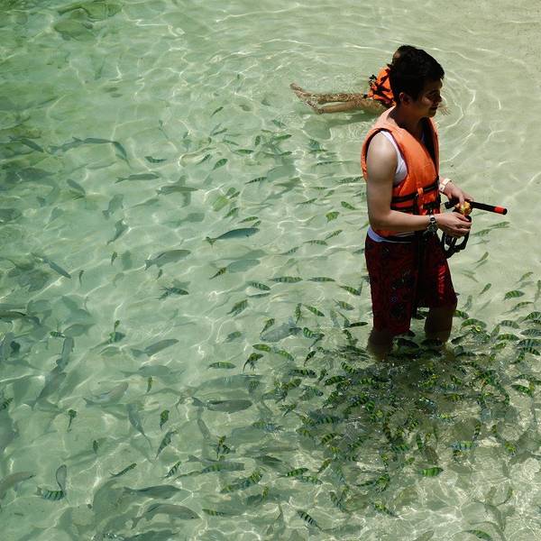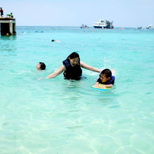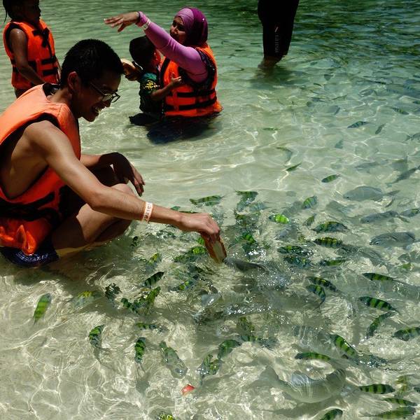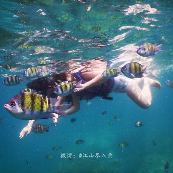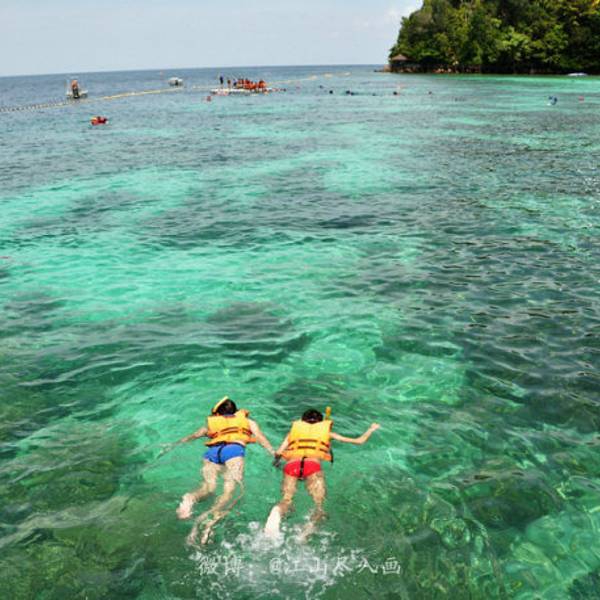 距离兰卡威本岛一小时航程的芭雅岛海域。可以与“鲨鱼”共游,还能邂逅来自各国的“美人鱼”哦。
