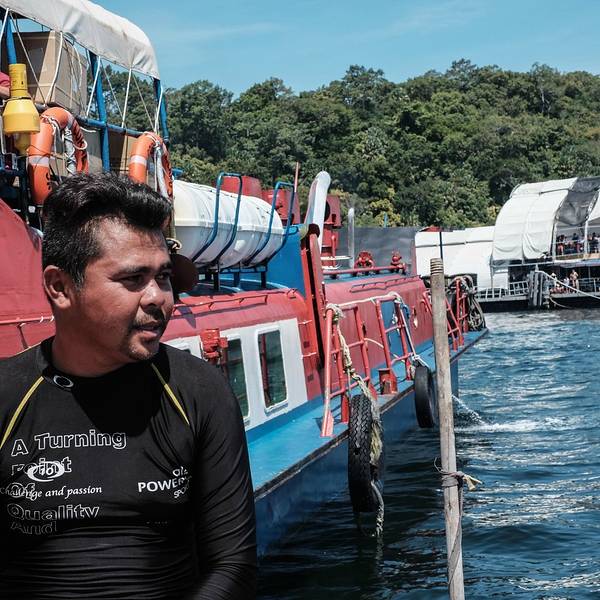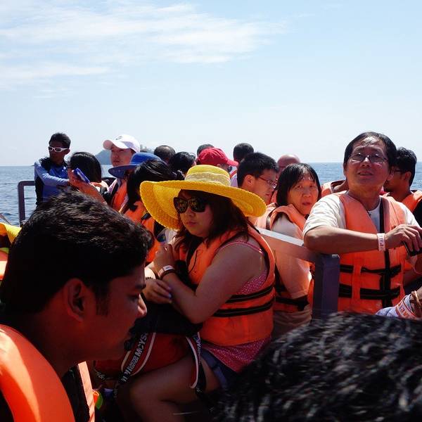先从酒店到瓜镇的码头,坐船到巴雅岛,游船要航行1个小时左右。天气不好,又没准备水下相机,照片拍得少。 展开