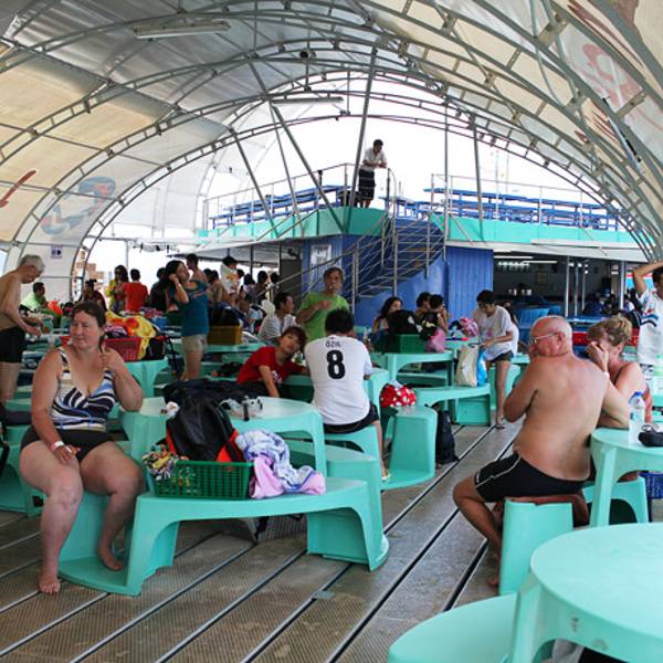 简单的讲,这里浮潜分浮台跟岸边,一定要报浮台的,可惜我们报名晚了浮台已经超负荷满员,无奈只能在岸边溜达。如果只能去岸边,那么这里其实不来也罢。