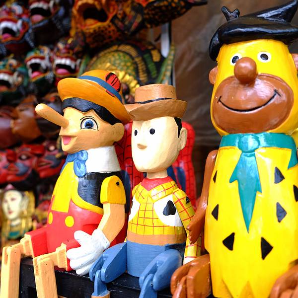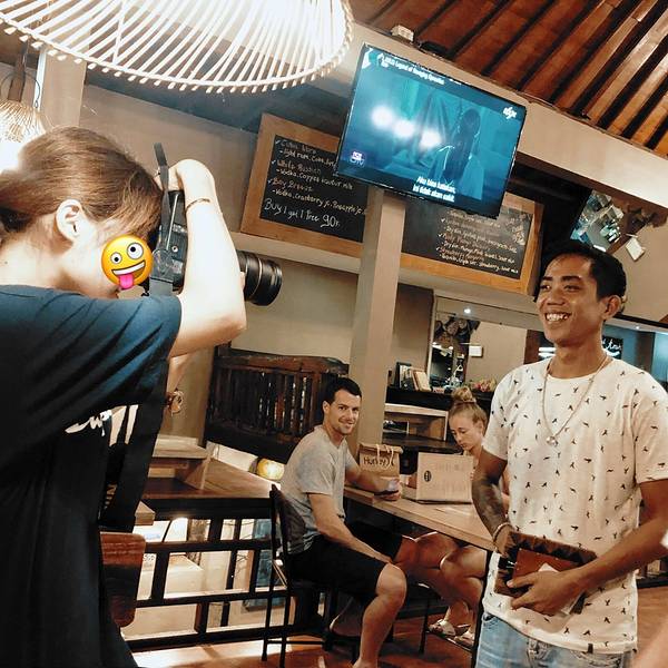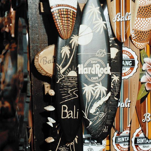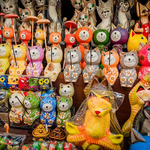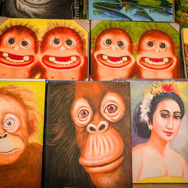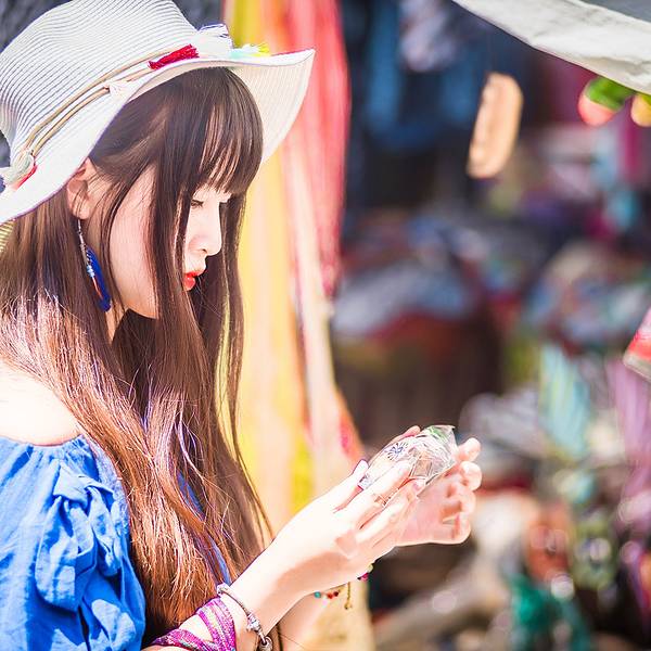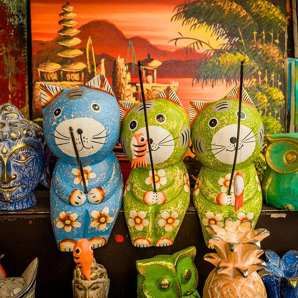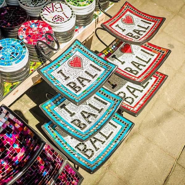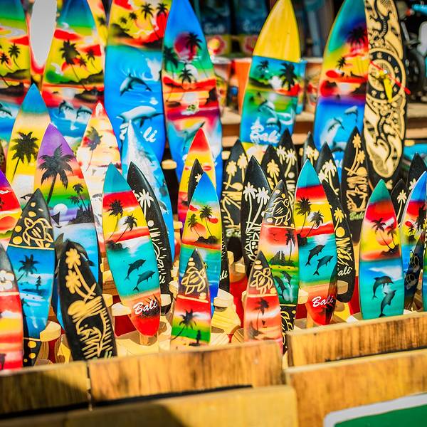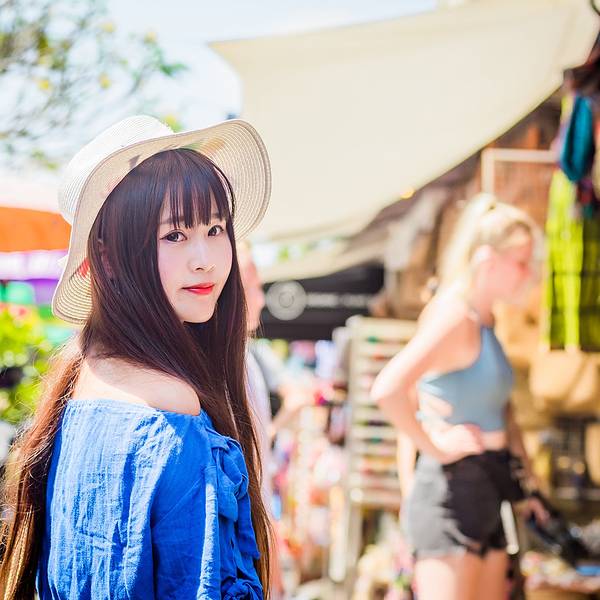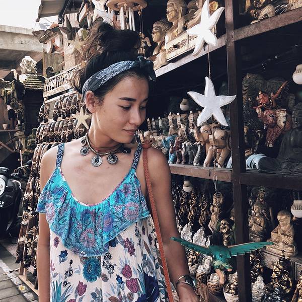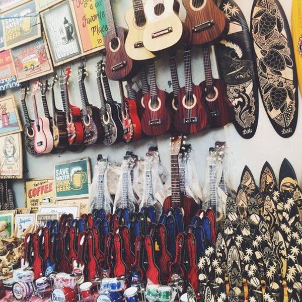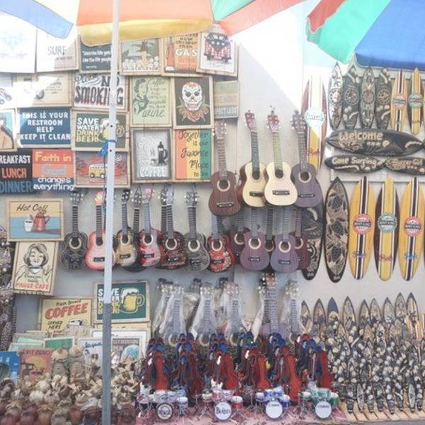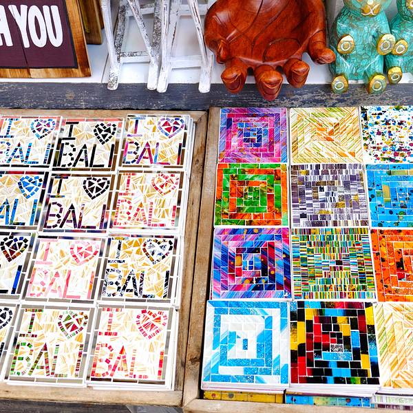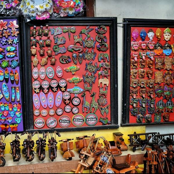乌布市场位于乌布皇宫的斜对面,从乌布皇宫走路过来只需要5分钟,属于乌布的闹市区,人多嘈杂。如果你喜欢淘一些有趣的小玩意儿,那这里你一定要来这边慢慢的逛一逛。衣服、彩雕工艺品、水果等等应有尽有,在这里...乌布市场位于乌布皇宫的斜对面,从乌布皇宫走路过来只需要5分钟,属于乌布的闹市区,人多嘈杂。如果你喜欢淘一些有趣的小玩意儿,那这里你一定要来这边慢慢的逛一逛。衣服、彩雕工艺品、水果等等应有尽有,在这里完全可以满足你们的购物欲望。乌布市场有一条主条路,路两旁店面众多,可选择性也很大,所以重点来了你一定要记得大刀阔斧的砍价,差不多按照商家出价的20%进行还价就可以啦,千万不要觉得不好意思,不然你就只能被商家坑。在这里讨价还价都是成千上万的,瞬间有种做假土豪的感觉。巴厘岛的风情画也非常有意思,最多看到的就是红毛猩猩和巴厘岛的人物还有风景主题,夸张的绘画手法,明艳的色彩看起来非常有巴厘岛的地域特色。各种彩色木雕也是巴厘岛的特色工艺品。还有一些马赛克的餐盘、杯垫做工也非常精致,既美观又实用。在巴厘岛的 大街小巷工艺品商店都有看到捕梦网,这不应该是韩国的特色嘛,问了导游阿文才知道,巴厘岛本来手工艺就发达,再加上韩剧的流行,所以他们很喜欢制作各种工艺的捕梦网,从小号到大号,各种颜色风格的捕梦网都有,如果喜欢的朋友就千万不要错过了。路上也会偶然看到装满小吃和水果的摩托车,如果你有需要购买也可以随时叫他们停下来。冉先森抓拍到一张我特别满意的照片,除了构图好以外把这姑娘的神情抓拍的也很到位,你们觉得呢?好喜欢这位姑娘礼貌而又含蓄的微笑。除了逛琳琅满目的手工艺品,在这里拍拍当地的人文特色也是一种不错的体验。狭窄的街道里洋溢着浓浓的巴厘岛民族文化气息,随处可见的婆罗门教建筑别有一番风味。各种彩绘的冲浪板非常能代表巴厘岛是冲浪者的天堂。各式各样的小物件看的我是眼花缭乱的,心里盘算着要买几样送给朋友作纪念。我和然先森不约而同被这一串串的木雕猴子所吸引,把猴子的神情雕刻的很到位,也比较有创意,买了好几串准备回去送朋友。这里的小学生大概下午两三点就放学了,学业非常轻松,他们身穿统一的校服,扎一样的辫子,簇拥在一起回家,仿佛也想到我的小学生活,只是没有这般的轻松美好。在街边等车的时候看到一个小少年可能是在等家长,他貌似对我的长枪大炮很感兴趣,一直望向我,那我就把握时机给你拍两张吧,哈哈~在乌布的马路上还经常会看到复古式的吉普车,出挑的色彩感觉非常拉风,在这个热情洋溢的热带国家竟还有一些复古的气息。街角处咖啡店的小黑板上用可爱的字体写着各种招牌冷饮,但却因这一天紧张的行程而没有办法坐下来好好品尝一番。