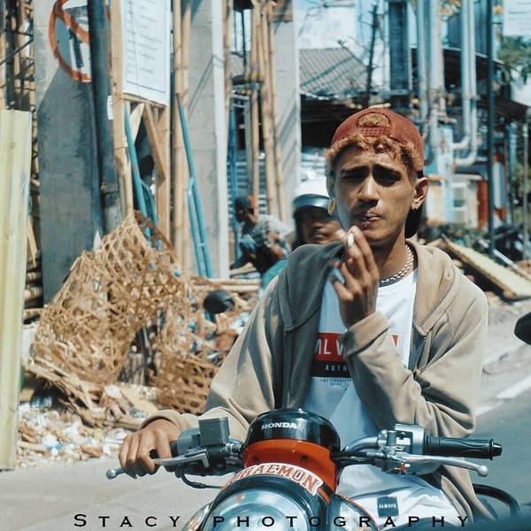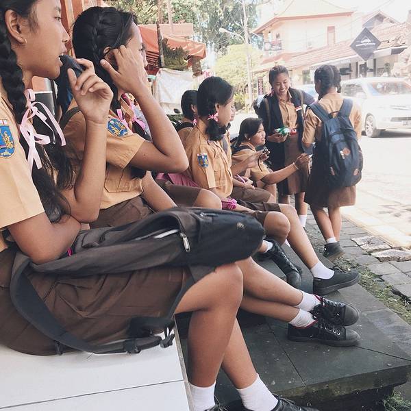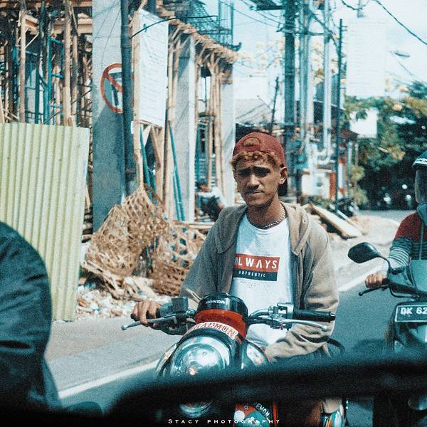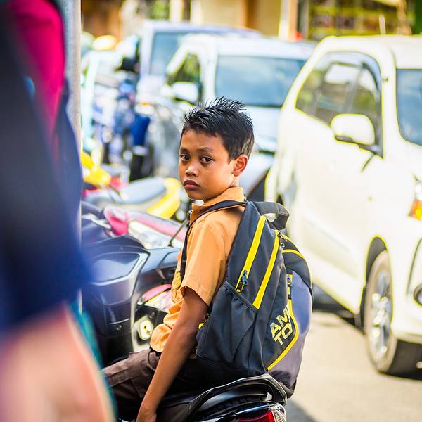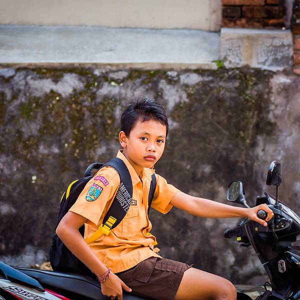 巴厘岛 和金银岛都是是摩托天堂,不宽的道路上全是接近生死时速的摩托客。赤足和踩拖鞋是常态,一切盖过了脚背的鞋子都几乎没有出现。有些上初高中的孩子开摩托上学,三三两两有说有笑,白色的制服扎在黑色的西装短裤里。▲他好酷。