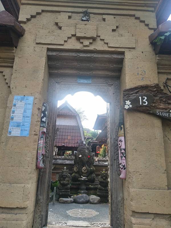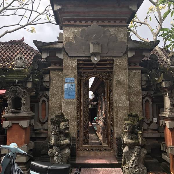 我们刚下车的地方比较堵,下了避开人群后就很幽静了家家门口都有这个,里面放着香、米之类的,我们猜测跟国内祭祀用途有异曲同工之效,习俗不一样,只做猜测,知道的小伙伴可以帮忙纠正一下有一家门是开着的,我...我们刚下车的地方比较堵,下了避开人群后就很幽静了家家门口都有这个,里面放着香、米之类的,我们猜测跟国内祭祀用途有异曲同工之效,习俗不一样,只做猜测,知道的小伙伴可以帮忙纠正一下有一家门是开着的,我们也不知道是公共的可供观赏的还是私人庭院,我跟李医生带着好奇探头探脑的就进去了,没想到还是一大户,走进门后就是一个很大的庭院庭院里面栽了好多植物,还有人在浇水,我们用微笑打了个招呼,没见人家说啥就大胆的逛了起来,两边各自有一栋,进过前面这个门,又有独立的房屋,处处散发着“豪门家族”的气息这是另外一家的院子,相对要荒凉一些,好多都有天空之门的这种建筑这家出去的时候发现有树屋,貌似还有人住在里面,想想可能是人家的卧室,我们就放弃了上去看看的想法逛的差不多就和师傅联系前往金巴兰海滩