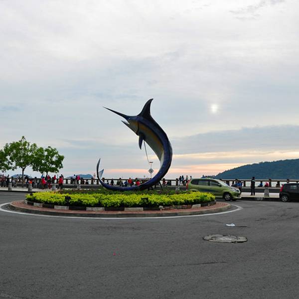 吃饱喝足,换钱去,亚庇是个南北狭长的城市,从最南走到最北也不过一个多小时,于是我们就把11路的功能发挥到底了,打车好贵的说。。。 攻略说默迪卡商场里面的汇率最高,好不容易走到那里,我们的酒店在最南面,默迪卡商场已经快到最北面的码头那了,结果转了一圈发现,原来是换钱的,我们可没带人民币额,提醒大家是用人民币换马币的,不是ATM机取钱的...而且也没觉得汇率很高,和槟城差不多吧,100人民币换51点多马币,这个商场里就2台ATM机支持银联的,不知道怎么回事,还不能取钱。。。 没钱急死人啊,问人才知道,商场对面过马路有一排的银行,丰隆,May bank ,RHB,什么银行都有,取到钱就定心了,每取500马币要5马币的手续费,而且一天最多取1500马币 默迪卡后面就是海,亚庇地标之一