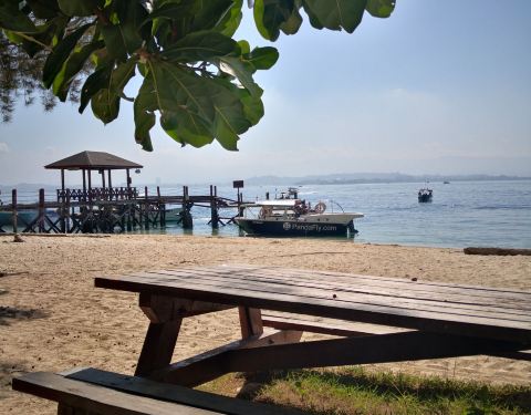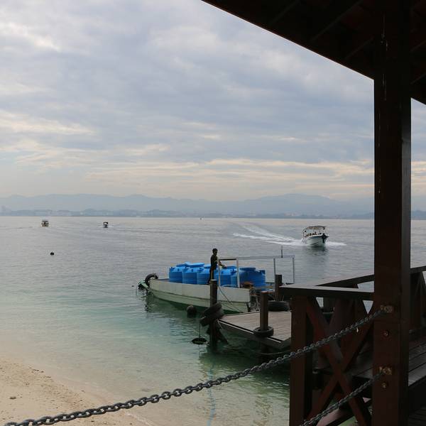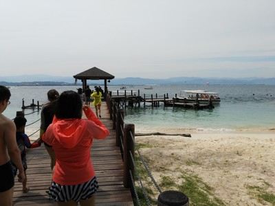 买好票后,在码头等了一会,会有人通知我们上快艇的,大概等了10分钟左右。所以费用,来回快艇费加上进岛费用,总共花了80多马币。我们早上9点左右就已经到了码头,回来的时候是下午2点,要是你不怕黑晒伤的话,可以多呆一会。只要和你买票的人说一下就可以了。