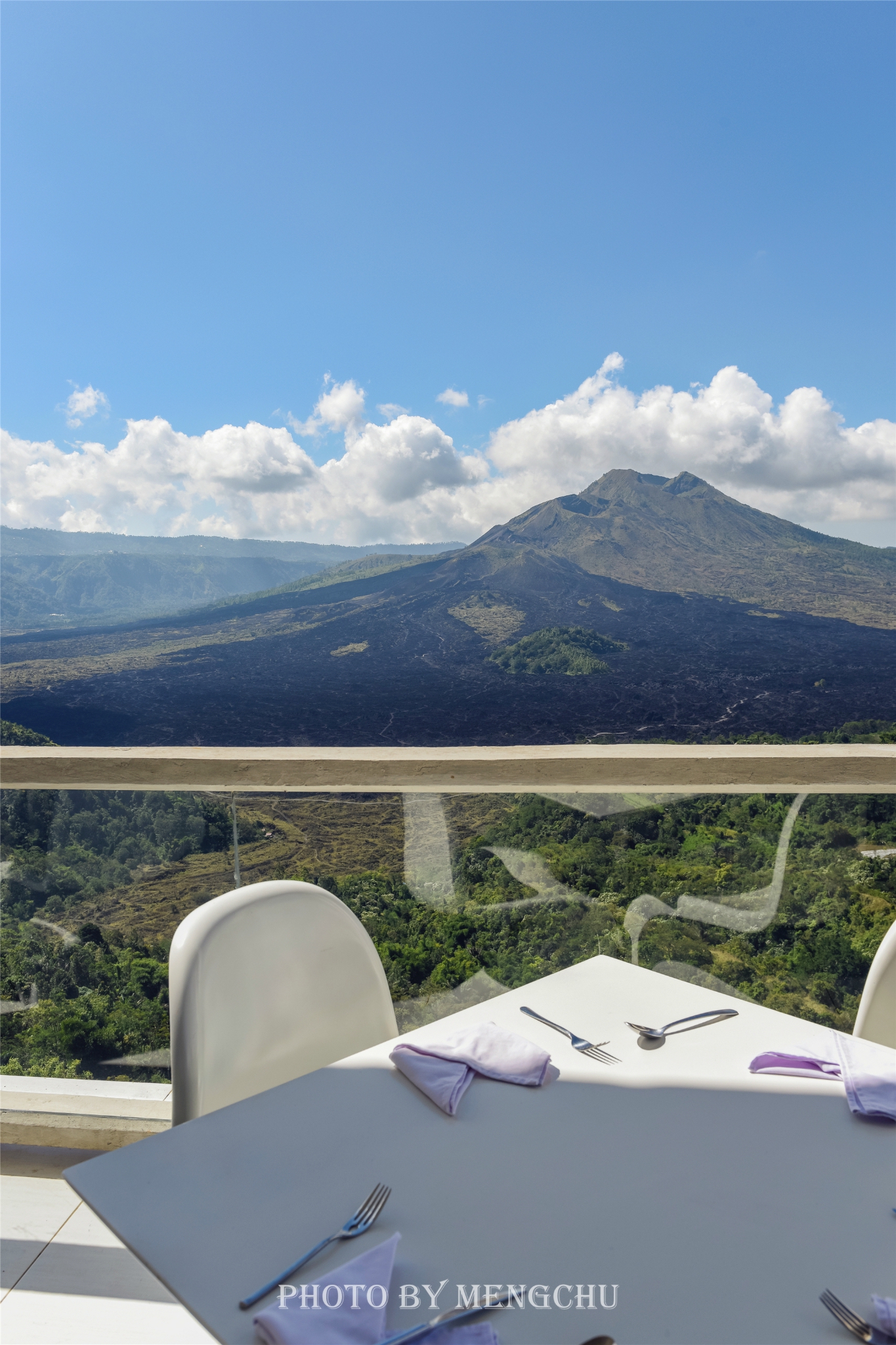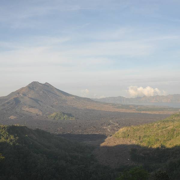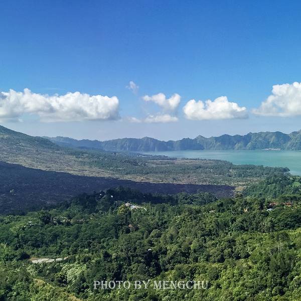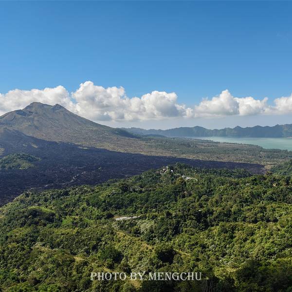 位于巴厘岛中部北边山区的京打马尼火山Kintamani Volcano是一座活火山,地处海拔1717米的巴都鲁山为中心的高原地区,是岛上少有的避暑纳凉休闲圣地。京打马尼火山设有观景台,从这里可以看到巴杜尔活火山和巴杜尔湖,山顶峰终年烟雾迷漫,湖水则波平如镜,在火山西边还能看见黑色的熔岩流。京打马尼火山是一座具有双层火山口的活火山,一个火山口内嵌着另一个。外层火山口呈椭圆形,西部的边缘高出海平面1500米;内层火山口宽7.5千米,形成于23670-28500年前。火山最近的一次喷发是在1917年,当时摧毁了无数村庄、神社,但同样也带来了肥沃的土壤。火山还挡住了来自印度洋富含水气的雨云,在此形成丰沛的降水。因此,百年之后的京打马尼,山上覆盖着茂密的热带雨林,山间奔腾着欢快的溪流,山脚下绿油油的梯田旁,栽种着柑桔、香蕉、咖啡、椰子等作物,处处都充满了旺盛的生命力。观景台附近有许多餐厅,每家餐厅都有着不错的火山观景位,可以一边欣赏火山的壮丽景色,一边品尝巴厘岛当地的特色菜肴。我们选在了拥有最好观景位的AMORA餐厅,125,000一位的自助餐,性价比还是蛮高的。不过在1717米的火山口对面悠闲地吃着午餐,吹着山风,赏着美景,吃了些什么已经都不重要了~Tips